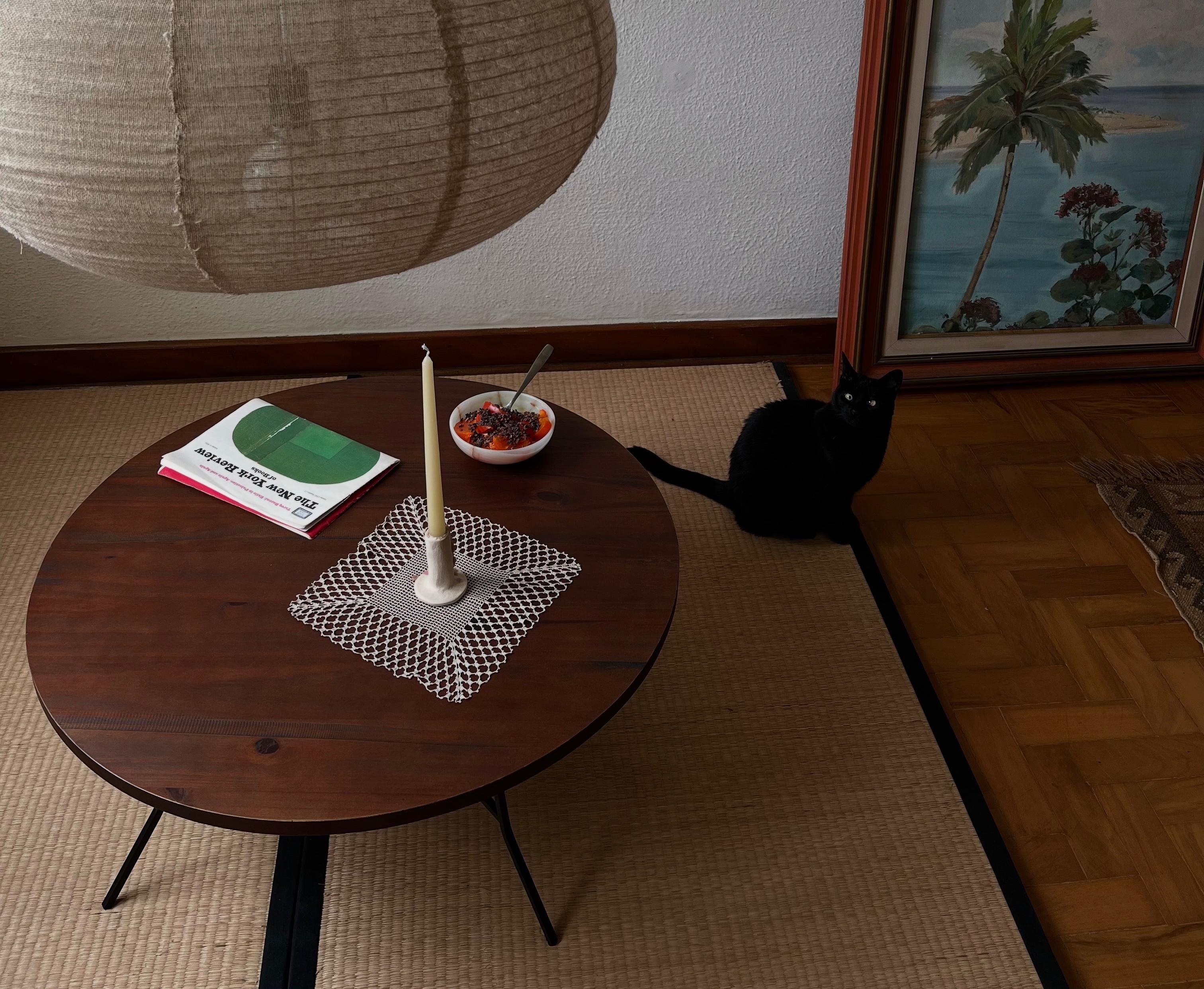 há poucos meses minha sala ganhou uma mesa de jantar baixa, sem cadeiras, apoiada sobre dois tatames de 90 x 200 cm, onde faço minhas refeições pela manhã e sobretudo à noite. um tatame padrão equivale a 1,62 metro quadrado. o descobri enquanto lia Patriotismo, conto de Yukio Mishima: em um quarto de oito tatames, um tenente da Guarda Imperial do Japão e sua esposa cometem o suicídio ritual chamado seppuku.